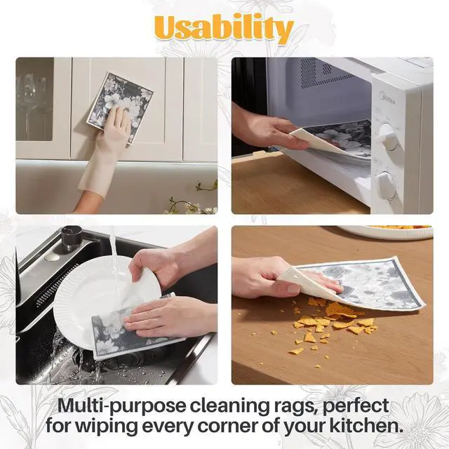 [Upgraded Appearance - Random Shipment] We are in the process of updating our product design! Some items may come with a brand logo watermark while others will not. You may receive either version but rest assured the quality and functionality remain the same[Ultra-soft Material Scratch Free] Ultra-soft highly absorbent cleaning cloth whose amazing absorbency provides streaky lint free cleaning of oily dishes in one wipe as well as household utensils kitchenware or countertops[Nature & Reusable] The Cleaning Cloth are made of cellulose fiber which help them keep good shape without deformation or falling apart even after long-time uses.
