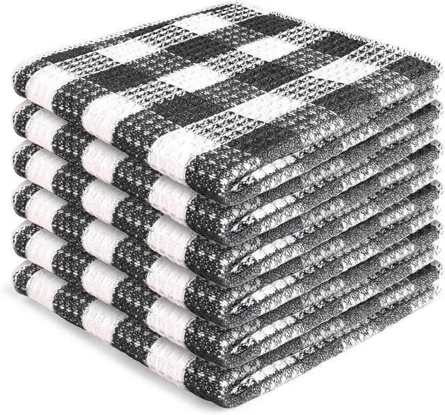 Check Plaid Design: Featuring a stylish plaid pattern these towels add a touch of rustic charm to your kitchen decor making them both functional and decorative.