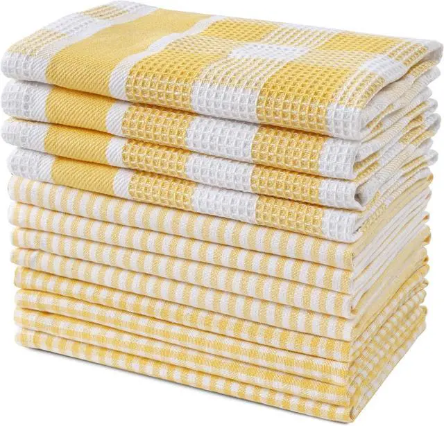 Multi-purpose Design: The design of our kitchen washcloths makes them multi-purpose. They can be used as dish towels hand towels or even napkins. The stripe design on our dish towels makes them look elegant and decent. Makes a great gift for the chef in your life! Care Instruction - Machine washable. Tumble dry on low. Its recommended to wash it separately on first use to minimize lint.