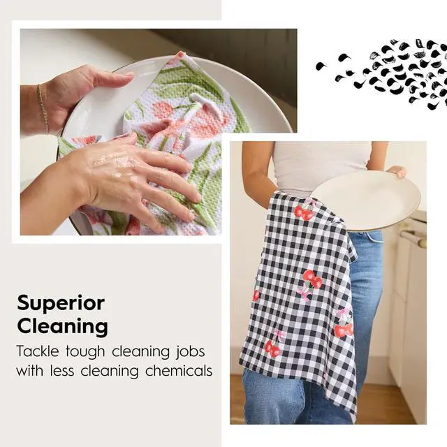 SUPERIOR CLEANING: Our kitchen tea towels lead the pack when it comes to picking up dirt and spills. With just a little water our towels can tackle the toughest of cleaning jobs allowing you to use less harmful cleaning chemicals.