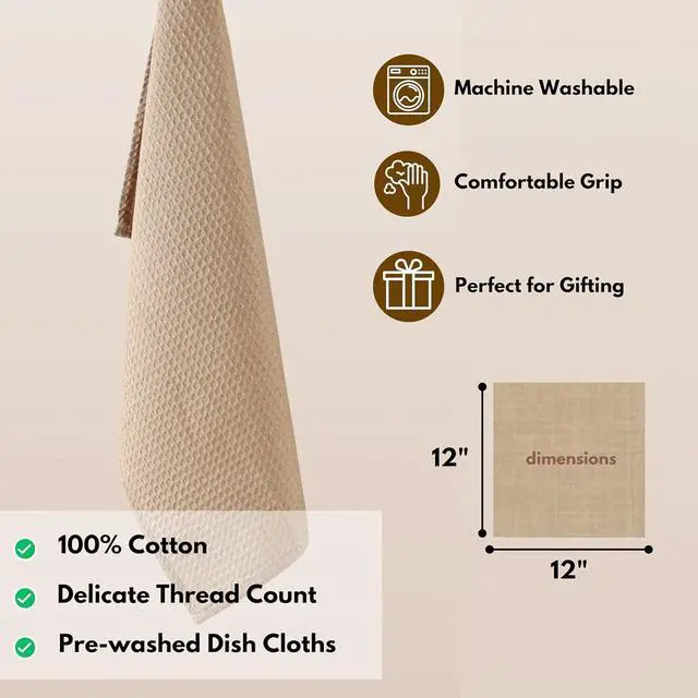 PERFECT SIZE: Each dish rag measures 12x12 inches (30x30 cm) with secure stitching providing perfect coverage for all your kitchen tasks.