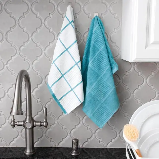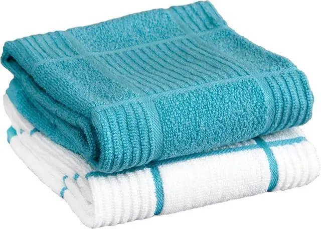 100% CottonImportedHIGHLY ABSORBENT. The parquet design allows water to wick along its surface. Made from 100% cotton these parquet woven dish towels are highly absorbent while still allowing air flow for quick drying. Measuring 16 x 26 (40 cm. by 66 cm. ) these towels have a high absorption threshold. MULTI-PURPOSE. These towels are built to withstand any task in the kitchen. Use them to wash clean or dry. The parquet weave can be used for both a scrubbing action for hard to clean surfaces moisture-wicking when drying and gentle when cleaning delicate objects.