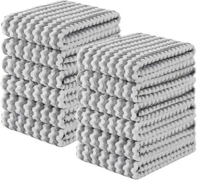 Value Pack: The collection includes 12 pack Microfiber cleaning cloths The wavy pattern design and available in a variety of colors to coordinate with any kitchen décor. Measuring 10 x 10 and 10 x 20 inches it is suitable for any home kitchen needs.