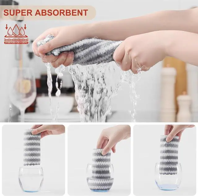 Super Soft and Absorbent: Experience the luxurious softness of our dish towels. They are crafted with high-quality materials which feels soft and won't scratch your hands or any surfaces. Strong water absorption easily absorb liquid and overflow make the surface clean and dry.