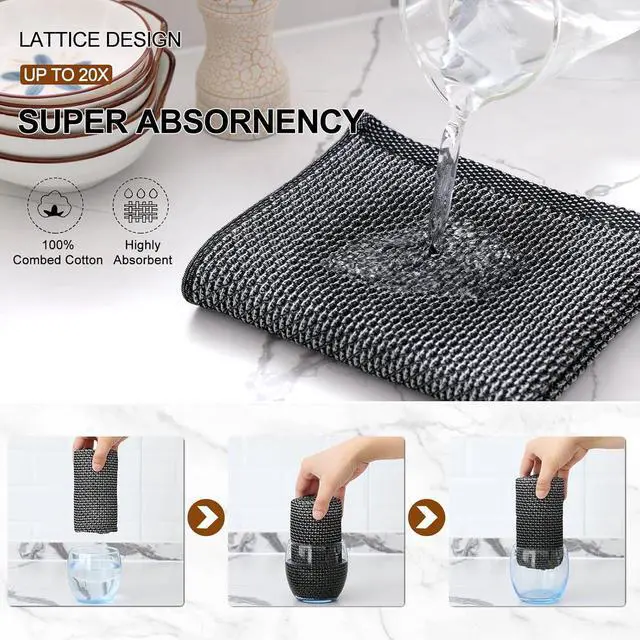 Absorbent: The hollow honeycomb weave design makes our kitchen towels lightweight and absorbent. They can easily wipe away stains dry dishware and dry quickly after washing for next time useVersatile