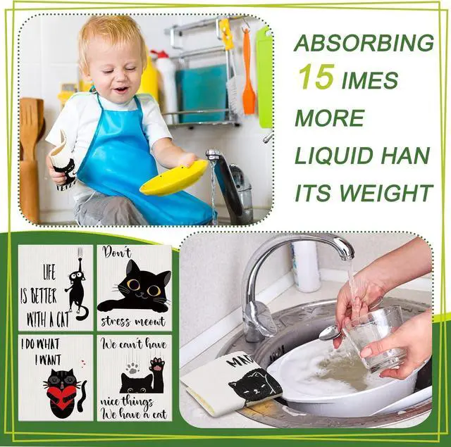 Daily Use: the kitchen towel set is suitable for wiping the surfaces of bowls pots and pans removing grease and particles from microwave ovens plates pots or pans leaving your kitchen tools and surroundings cleaner and more compact for your kitchen convenienceCat Lovers Gifts for