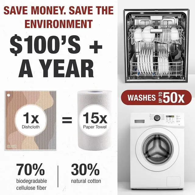 Durable and Reusable: Our swedish dish clothes are made from 100% cellulose. With natural cotton trim this will last at least 8 weeks & can be washed up to 200 times. Great alternative to those endless rolls of paper & unpaper towels.