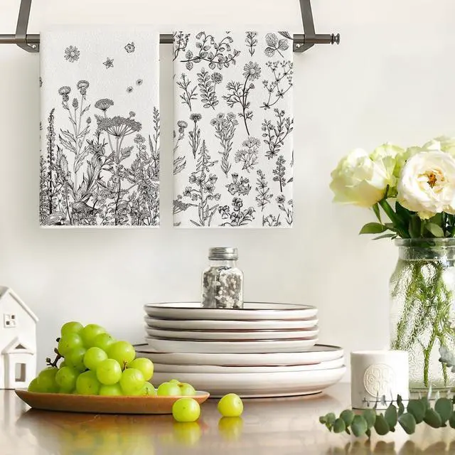 Absorbent: Absorbent enough for drying cleaning scrubbing or achieving any other household task. Keep absorbent even after multiple machine cyclesIncludes: Brand new set of 2 stylish dish towels/tea towels 18 X 26 Inches (43cm X 66cm) long-lasting durability and performanceKitchen