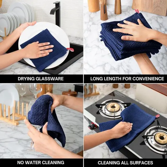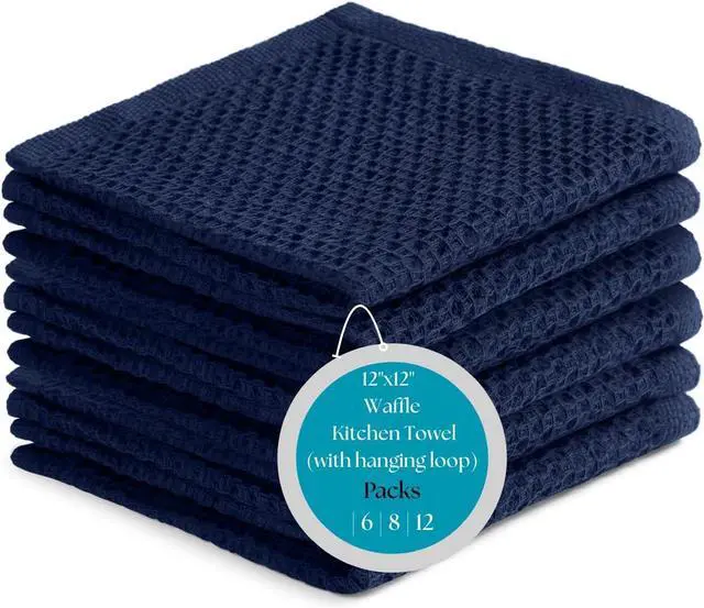 Value Pack: This set includes 6 solid Blue cotton kitchen towels each measuring 12x12 inches offering the perfect size and quantity for exceptional cleaning performance. More durable and eco-friendly than paper towels.
