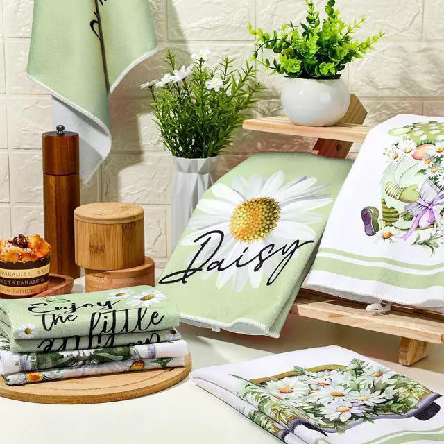 What You Get: you will receive a total of 6 different styles of daisy themed kitchen towels with enough quantity and novelty styles to meet your daily needs for cleaning kitchen dishes and you can also share them with your family and friendKeep for a