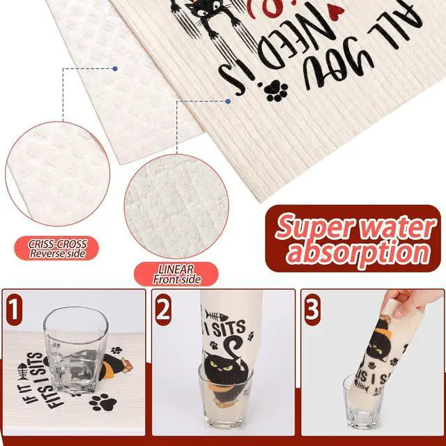 Reusable: this cat dish towel is reliable and is suitable for everyday use which can be washed up to 200 times and will work effectively without damaging your cutlery or other items you clean; This reusable dish cloth is a nice alternative to sponges and paper towelsSuitable