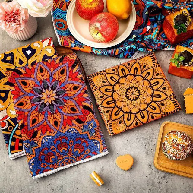 Package Including: our package contains a total of 6 different styles of delicate kitchen towels; The ample quantity and variety of mandala patterns can meet your daily needs and you can use it as a kitchen wipe for stainsQuality