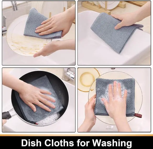 Absorbent: The hollow honeycomb weave design makes our kitchen washcloths lightweight and absorbent. They can easily wipe away stains dry dishware and dry quickly after washing for next time useVersatile