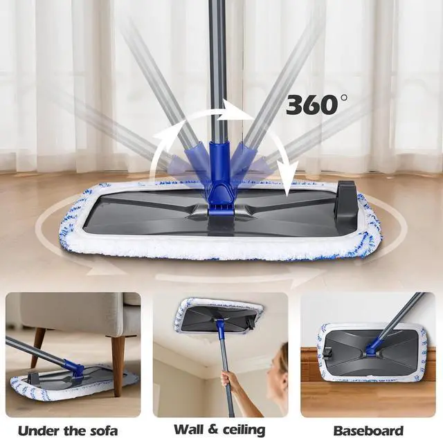 360° Rotation: The dust mop head can rotate 360° to reach any gaps and deep corners under furniture with ease. An extra scraper can help you clean dirt stuck on the microfibre mop pad. Search ASIN B07YCF3ZWN for replacement pads.
