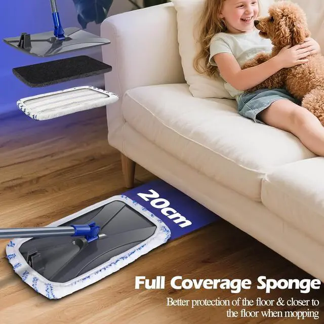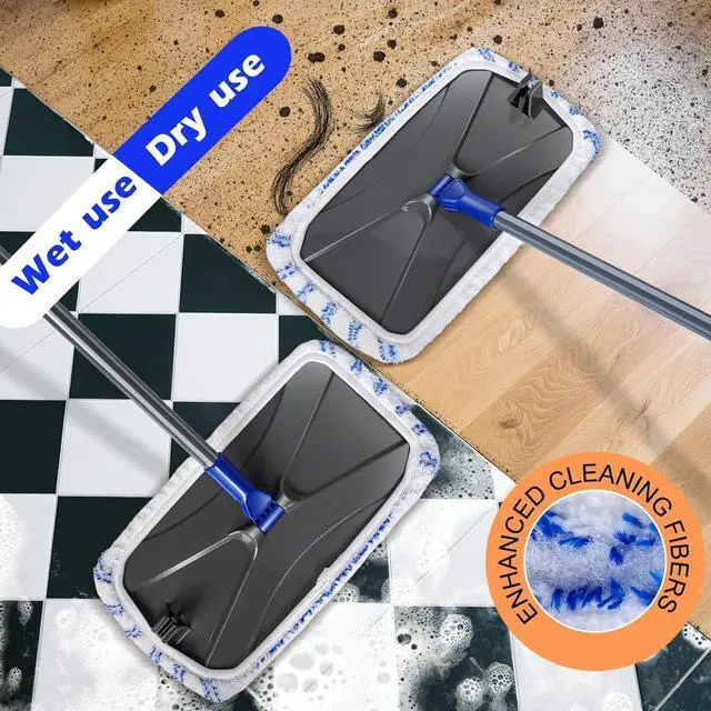 More Larger Mop Head: Our microfiber mop pad is suitable for large area cleaning. The size of the mop head is 16' ' x 8.4 ' '. Save at least half the cleaning time.