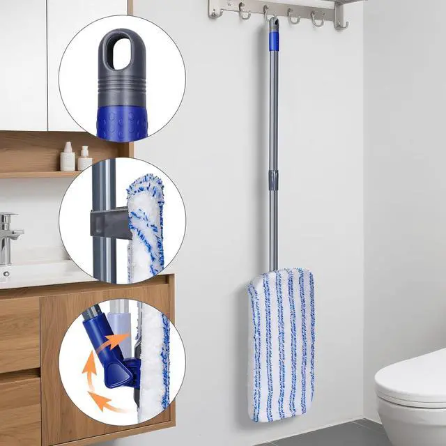 127cm Adjustable and Extendable Handle: The flat mop head is designed to fix the mop handle. The length of the mop handle can be adjusted according to the height. Mop can hang to dry with holes. It is tidy for room and help to save storage.