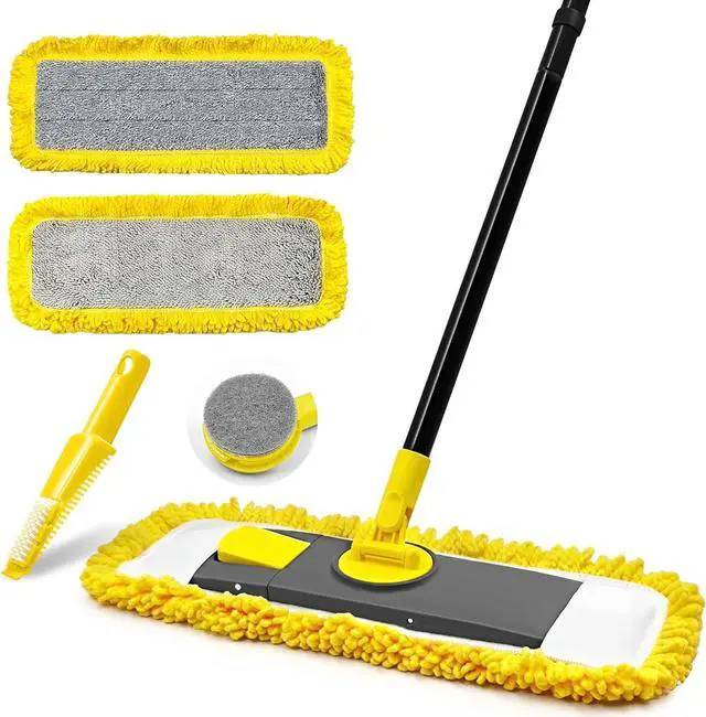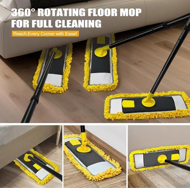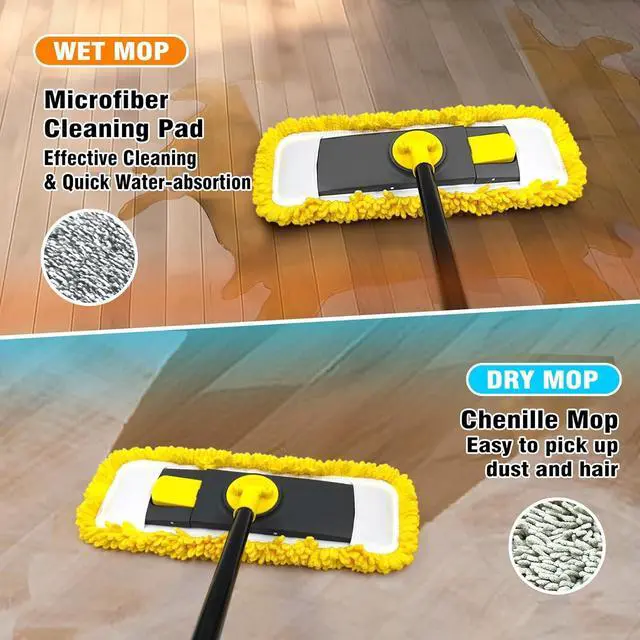 CHENILLE & MICROFIBER MOP PADS COMBO: Dolanx flat mop for floor cleaning comes with 1 high-density chenille pad and 1 microfiber pad. The microfiber mop can be wet-used for absorbing water, while chenille mop can be dry-used for removing dust, hair and debris.