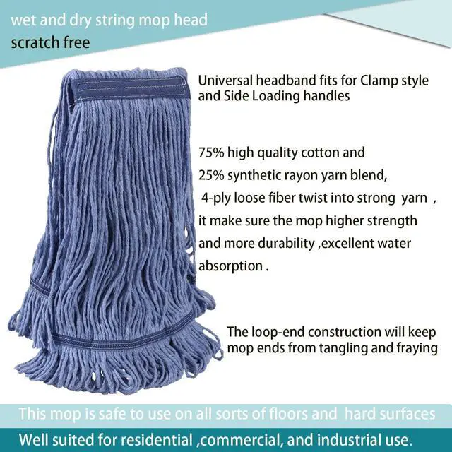 Super absorbent cotton mop head: Machine Washable loop-end mop head use high quality cotton material, yarn tailband prevent the loops from getting tangle and reduce fraying, the same time it also help the loops flat on the floor for maximum surface area contact, it can easily remove the dirt and absorb the water stains on the floor.