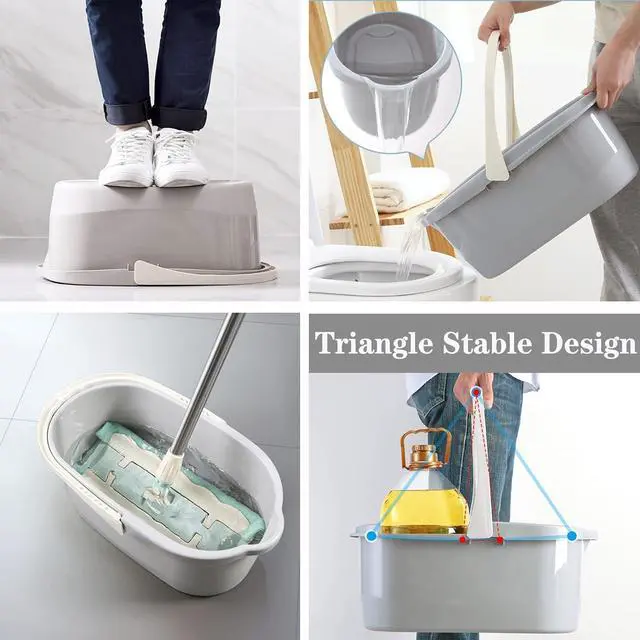 Large Capacity - 4.5 Gallon cleaning bucket, suitable for a variety of household cleaning, measured size is about 17.5 x 9.8 x 7.3 inch /44 x 25 x 18.5 cm. Sturdy plastic construction is durable and stable enough to carry large, heavy items.