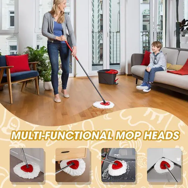 EASY WRING MICROFIBER MOP HEADS: Designed of 360 degree spin mop head allows for better corner cleaning, which can be easy for cleaning hard to reach corner or under furniture, making your floor cleaning fast with a simple spinning.