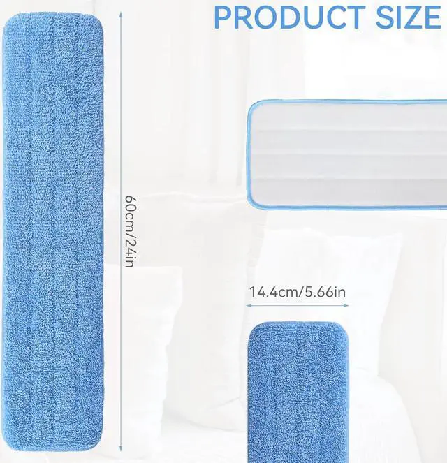 8 Pack combination: Package includes 8 pack Microfiber Mop Pad Refills with the size 24" x 5.5 ", Reusable and Washable