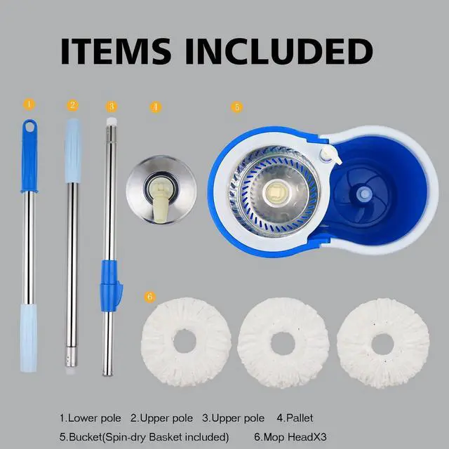 Spin mop & bucket has stronger spin wringing performance than those work with pedal. The built-in wringing basket has splash guard features, keep the water inside the bucket, the mop head wrings drier saves energy and time.