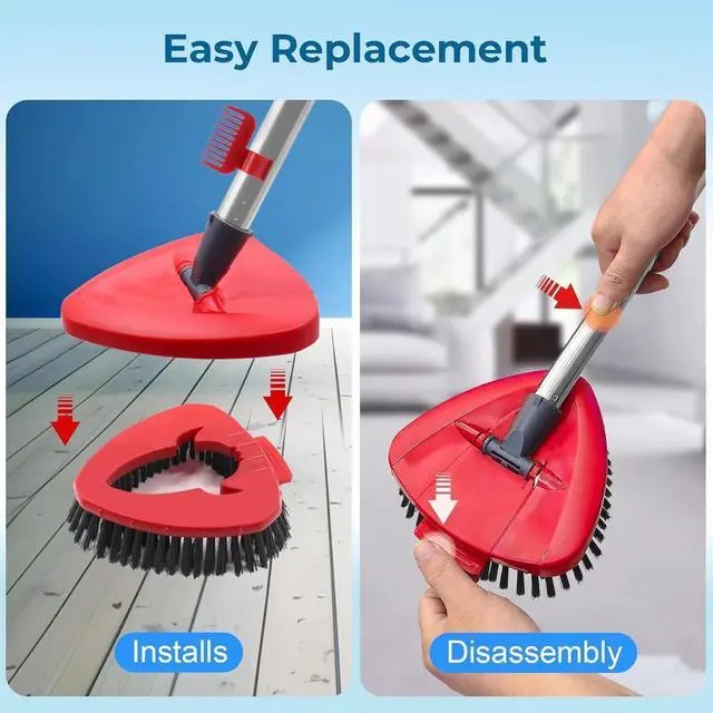 [Easy to Install]: replacement Head and Base snap together, very solid; just remove the dirty mop head and snap the new spin mop refill into the triangular mop base, after you hear a " click", it means the replacement is successful.
