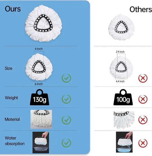 Package: You will receive 8 pack mop replacement heads, These mop heads are perfect for triangle spin mop system, compatible with the EasyWring Spin Mop. Machine washable.