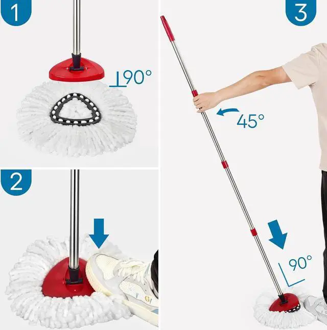 Utility Design - The mop head adopts a rounded triangle design as a whole, which can reduce the resistance of mopping the floor. Flexible rotation can clean into corners and fit under furniture, and prevent the mop from hurting you, your family