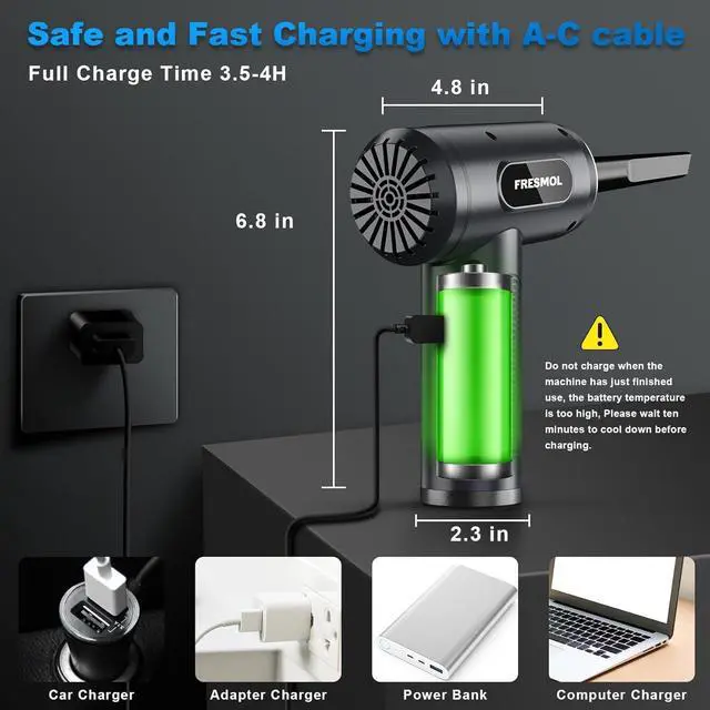 Lightweight and Portable : The cordless air duster is easy to carry, lightweight, and comfortable to grip. The battery is equipped with temperature protection, current protection, and short circuit protection, ensuring the safety of the device throughout the charging process. It is a perfect choice for dust cleaning in homes, offices, and automobiles.