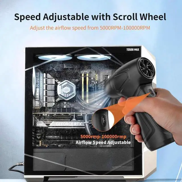 PinaiIon Rechargeable Compressed Air Duster for PC Computer, Cordless Mini Air Blower Portable, Super Powerful Dust Blower Speed Adjustable, Air Duster for Home, Outdoor, Leaf, Keyboard, Car Cleaning