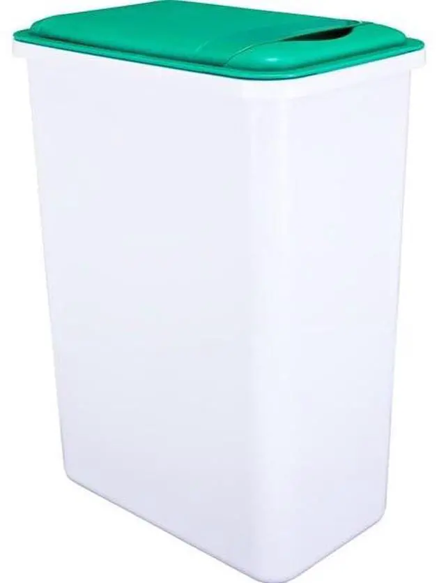 Contain waste with a heavy-duty white 35 qt plastic waste container. Durable polymer plastic is designed to have some flex while preventing breakage.