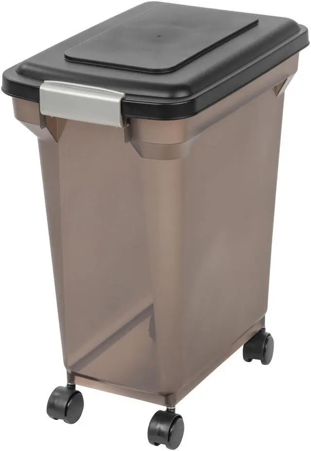 The IRIS Premium Airtight Pet Food Container is translucent, versatile, functional, and can be used in any area of the house. Made in the USA. FDA-compliant and BPA-free material.