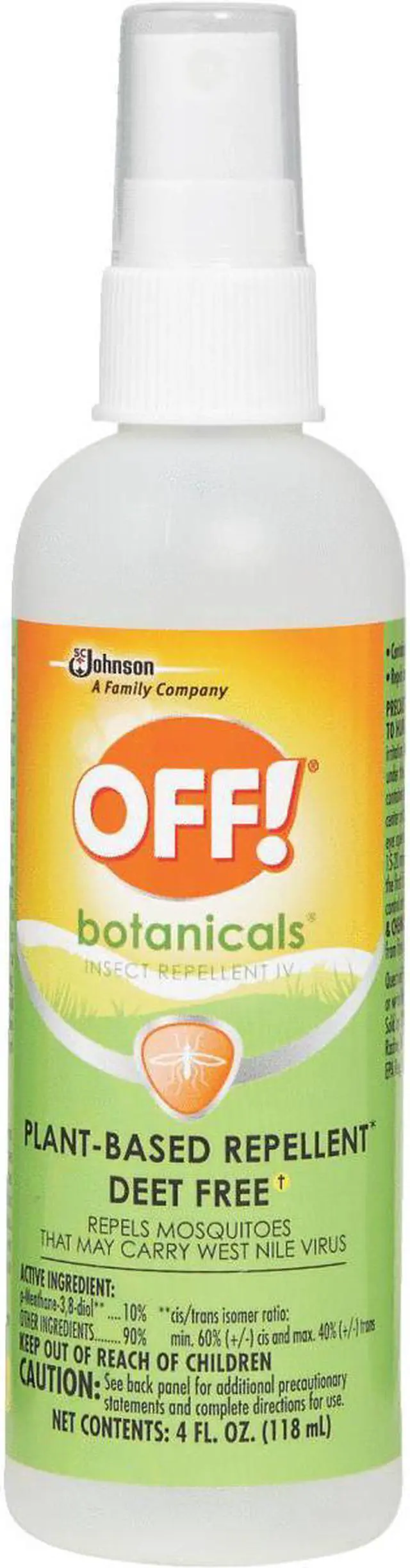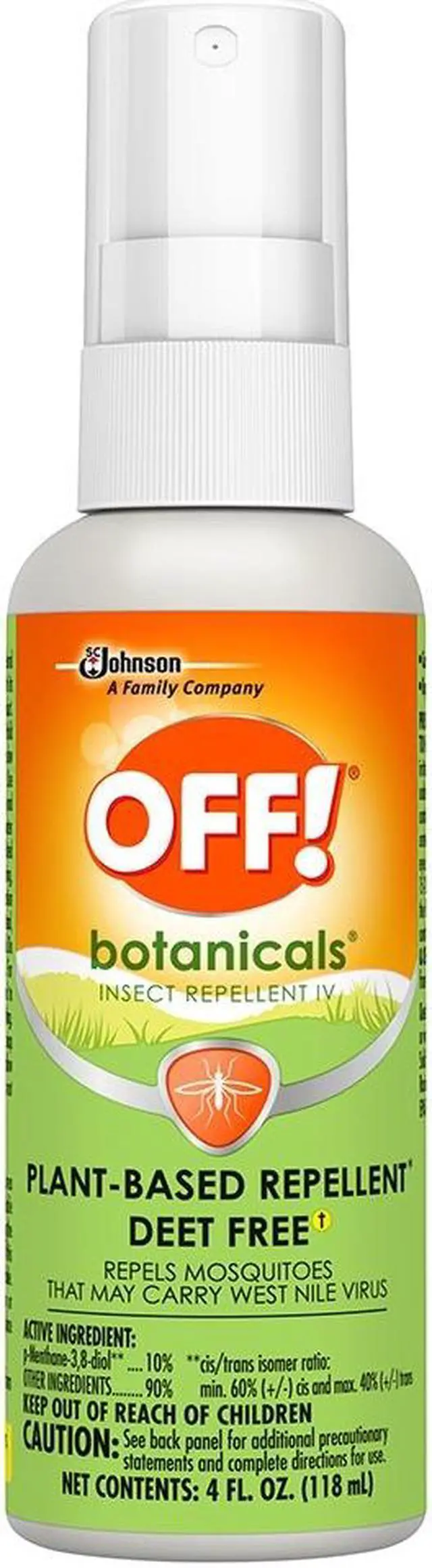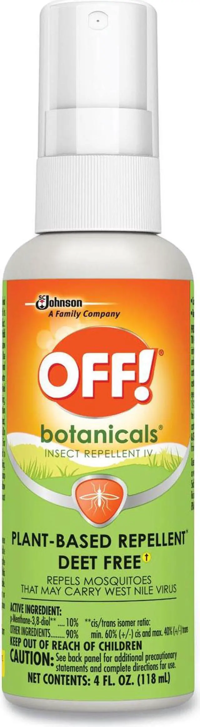 Don’t let mosquitoes keep you and your family from enjoying the outdoors. OFF! Botanicals Insect Repellent is a plant-based repellent, with an active ingredient chemically synthesized from pine oil extract. Provides effective protection from black flies, gnats, no-see-ums and mosquitoes, including those that may carry the West Nile virus. DEET-free.• DEET-free (for protection that lasts more than 2 hours, choose a DEET-based repellent)• Plant-based formula (active ingredient chemically synthesized from pine oil extract)• Contains no added fragrances or dyes• Repels black flies, gnats, no-see-ums and mosquitoes that may carry the West Nile virus• Pump spritz allows for easy application