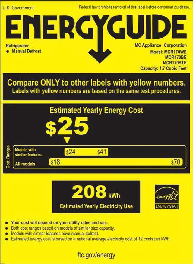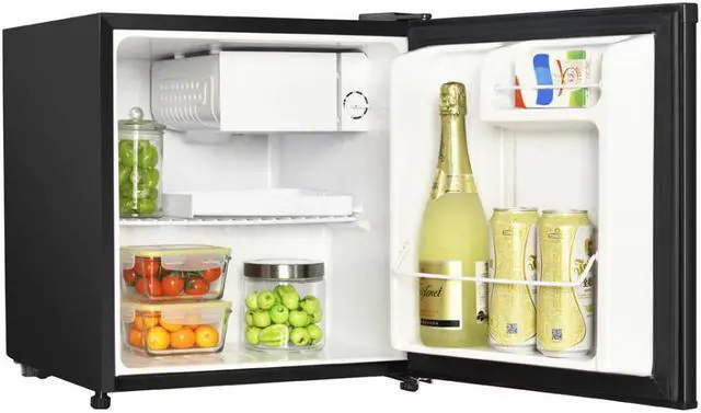 Magic Chef MCR170BE 1.7 Cubic-ft Manual Defrost Refrigerator (Black) Convenient in-door storage for small & large beverages Compressor cooling system for a consistently cool temperature Wire shelf in main compartment helps keep items organized Recessed handle for easy opening & closing Adjustable temperature thermostat control for customized cooling Leveling legs help stabilize the refrigerator on uneven surfaces Reversible door & flush-back design for additional flexibility in placement Black Convenient in-door storage for small & large beverages Compressor cooling system for a consistently cool temperature Wire shelf in main compartment helps keep items organized Recessed handle for easy opening & closing Adjustable temperature thermostat control for customized cooling Leveling legs help stabilize the refrigerator on uneven surfaces Reversible door & flush-back design for additional flexibility in placement Black