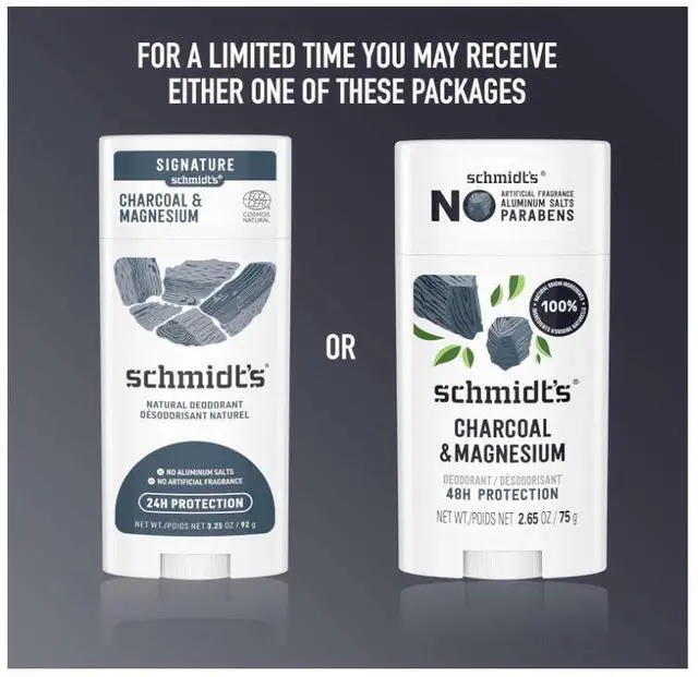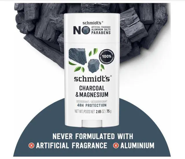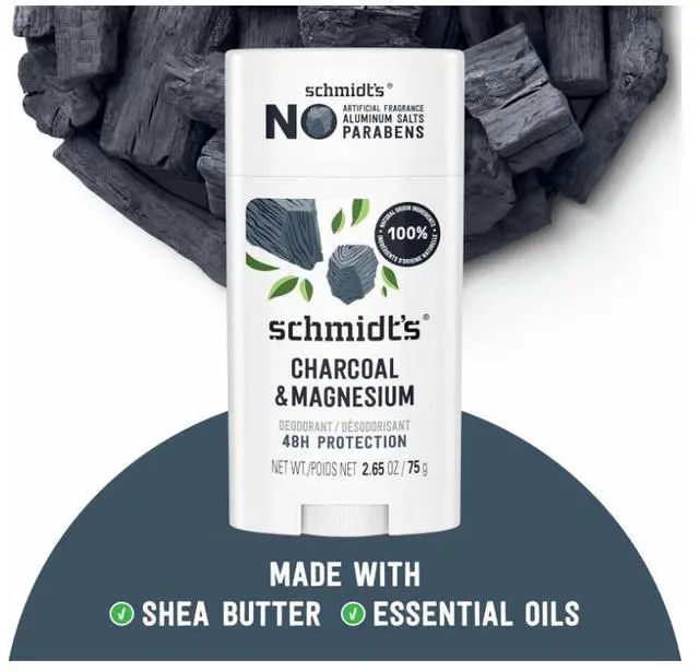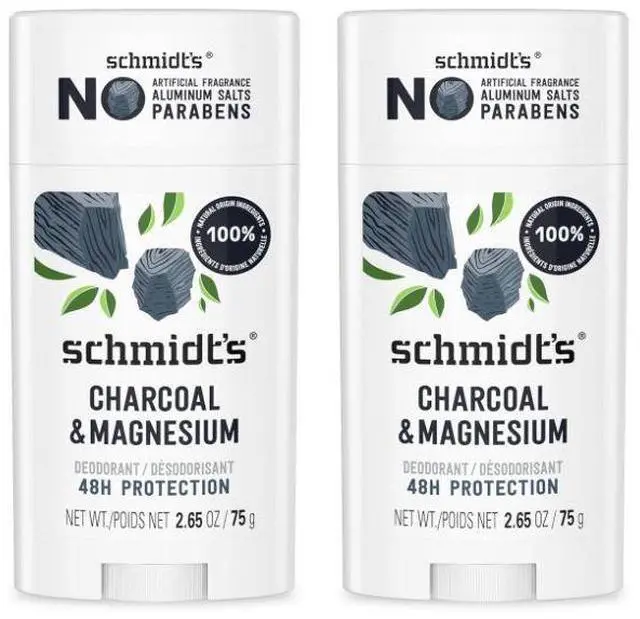 Stay fresh naturally with Schmidts Charcoal & Magnesium Deodorant a vegan, aluminum-free deodorant that provides up to 48 hours of odor protection. This 2-pack (2.65 oz each) uses natural ingredients to neutralize odor and keep you feeling clean and confident all day long. Perfect for both men and women, its cruelty-free, gentle on skin, and free from artificial fragrances.
