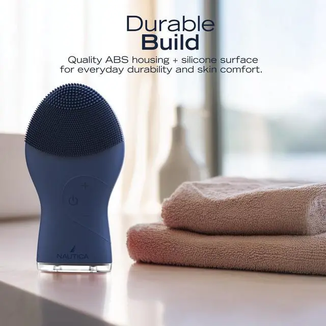 PC120 Facial Cleansing Brush Made with Ultra-Hygienic Soft Silicone, Waterproof, Rechargeable Vibrating Face Exfoliator Scrub Brush with Sonic Technology for Men & Women - Navy