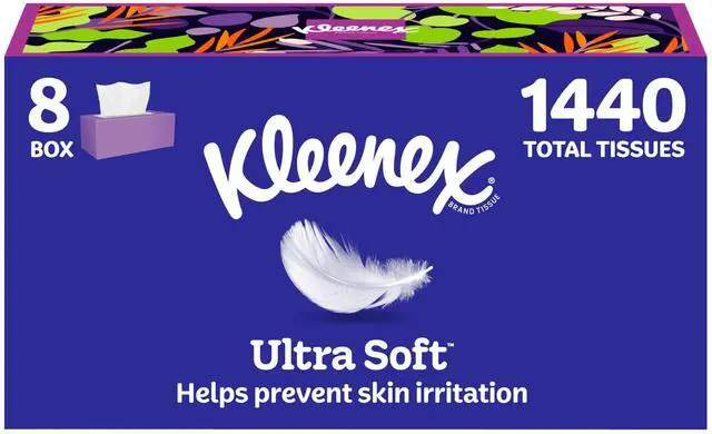 A: Kleenex Ultra Soft tissues are silky soft for up to 100% irritation-free skin and feature our Clean Shield technology that helps contain the mess 3x better than the leading value toilet paper.