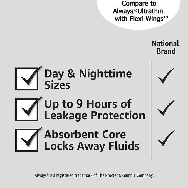 TRY IT: If you like Always Ultra Thin Pads with Wings, we invite you to try Amazon Basics Ultra Thin Pads with Flexi-Wings