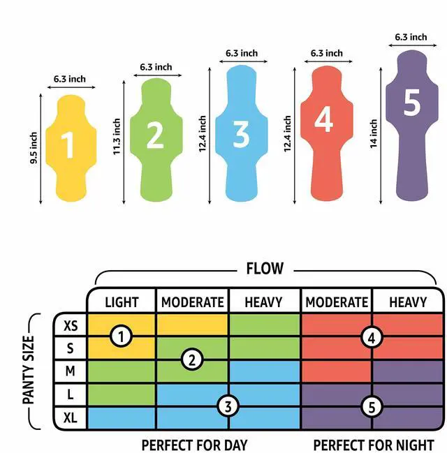 FIND YOUR PERFECT SIZE: Use our size chart to find the best fit for your needs with our sanitary napkins, ensuring excellent coverage and preventing leaks