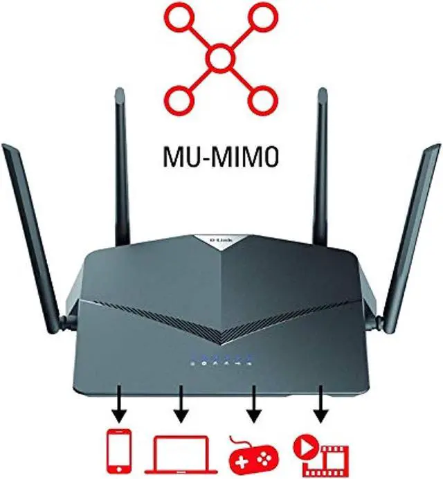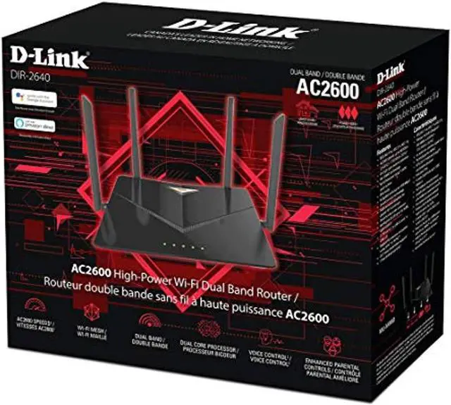 The D-Link Smart AC2600 High-Power Wi-Fi Gigabit Router brings blazing-fast AC2600 Wi-Fi and mesh technology to your smart home. With Wi-Fi speeds up to 800 Mbps ( 2.4 GHz) plus 1733 Mbps (5 GHz), you can enjoy uninterrupted gaming. Four high-performance external antennas and AC SmartBeam technology deliver strong Wi-Fi to every device in your home, and voice control lets you manage your network without lifting a finger. For even greater range, D-Link Wi-Fi Mesh makes it easy build your own customized mesh network with compatible D-Link extenders. Expand your coverage from the bedroom to the kitchen and even the backyard.