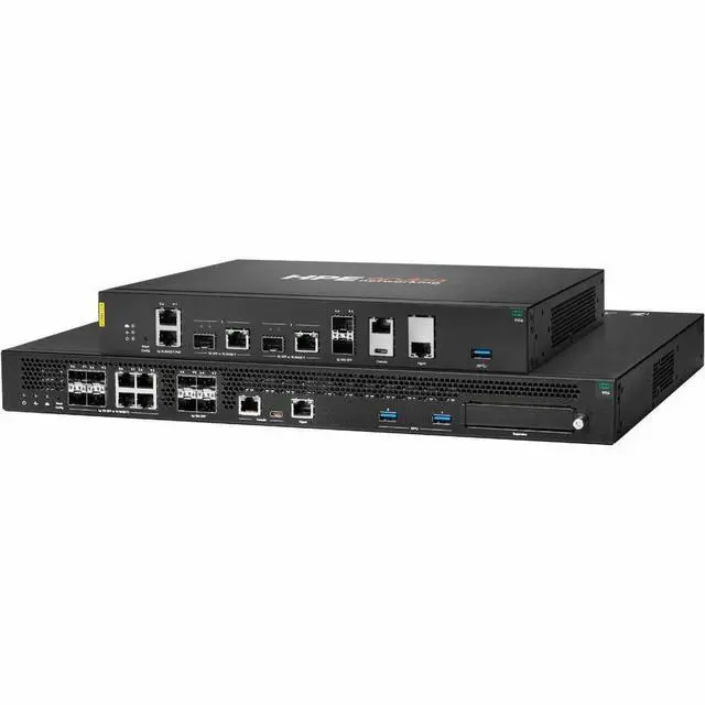 The HPE Aruba Networking 9100 Series Hybrid Gateway is a cloud-optimized edge appliance designed to extend enterprise services securely and seamlessly to large branch and small campus networks. This purpose-built high-performance edge appliance delivers Wi-Fi roaming, 24x7 reliability, and always-on connectivity - even during upgrades. Intelligent automation, AI insights, and unified infrastructure management, provided by HPE Aruba Networking Wireless Operating System (AOS-10) and HPE Aruba Networking Central, help drive efficient IT operations. The 9100 Series provides advanced wireless capabilities, intelligent routing with both wireless and wired tunnel orchestration, and strengthens security with automated and unified role-based policy enforcement for users and IoT across LAN, WAN and SD-WAN.