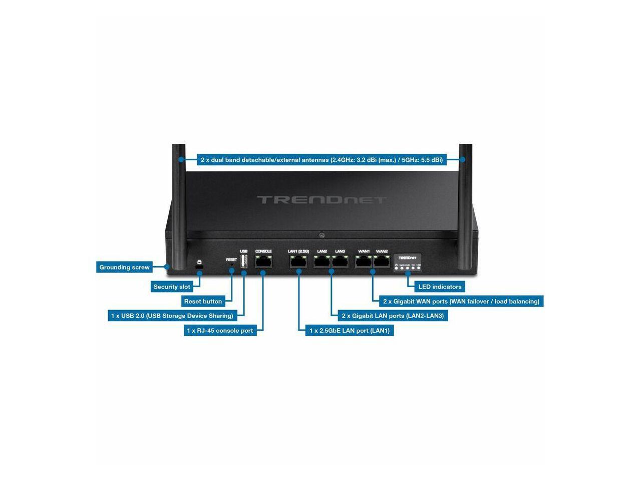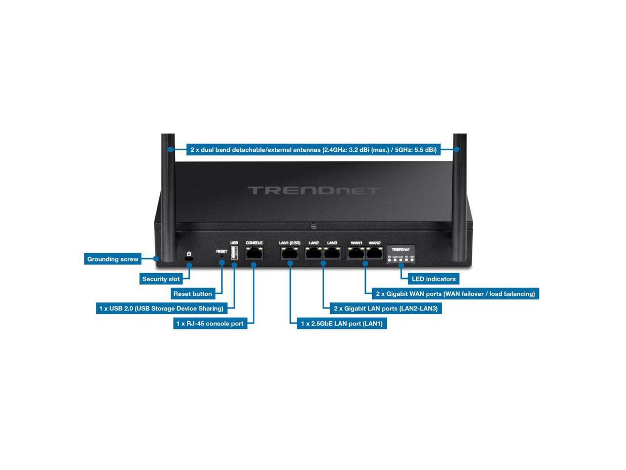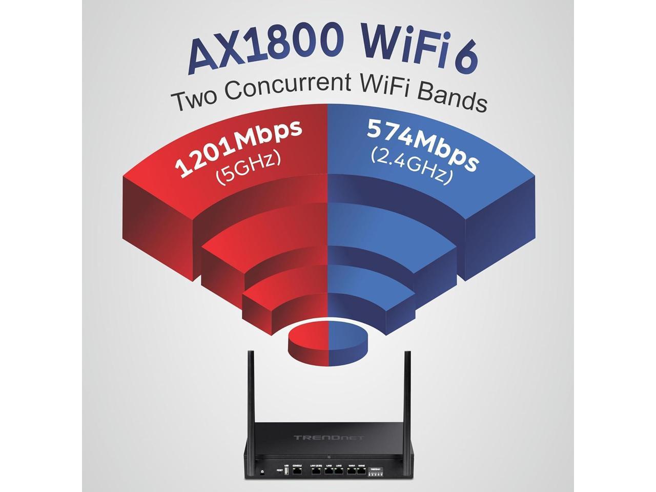TRENDnet TEW-929DRU, AX1800 Dual-Band WiFi 6 Gigabit Dual-WAN VPN SMB Router