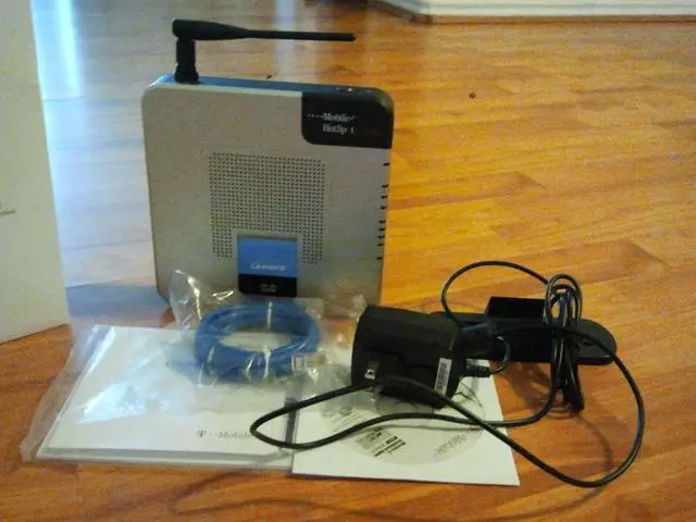 This Linksys WRTU54G-TM T-Mobile Hot Spot @Home Wireless G Broadband Router allows calls to be made via T-Mobile's GMS network or via Wi-Fi using the same telephone and phone number! It provides superior wireless reception and enhanced battery performance for T-Mobile HotSpot @Home enabled mobile phones.The wireless router is also compatible with standard landline phones and wireless notebooks and PCs and provides a data rate of up to 54 Mbps with other wireless G devices. The WRTU54G-TM features four Ethernet ports that allows up to 4 wired PCs to share the Internet and a port for connecting a Cable/DSL modem.