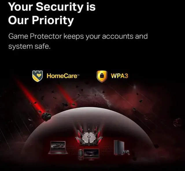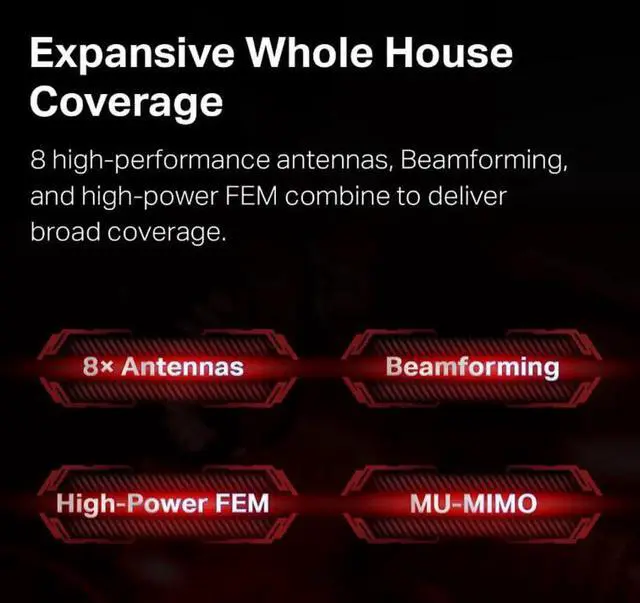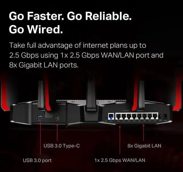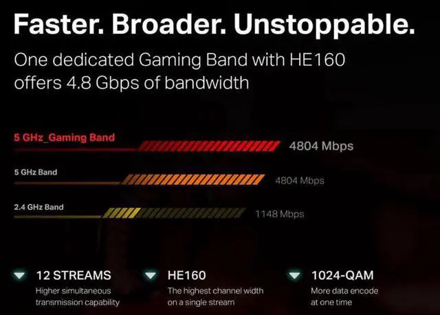 Faster speed the router is, less congestion for gaming rigs. Armed with Wi-Fi 6, Archer AX11000 becomes the next-level speed machine that offers astonishing Wi-Fi speeds up to 10756 Mbps with an extended range.1