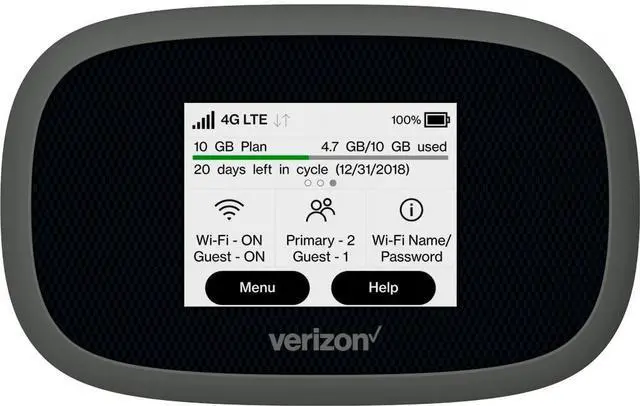 The Verizon Jetpack MiFi 8800L in Gray is a compact 4G LTE mobile hotspot built for reliable connectivity on the go, featuring a responsive 2.4 inch touchscreen display for quick setup and status checks.