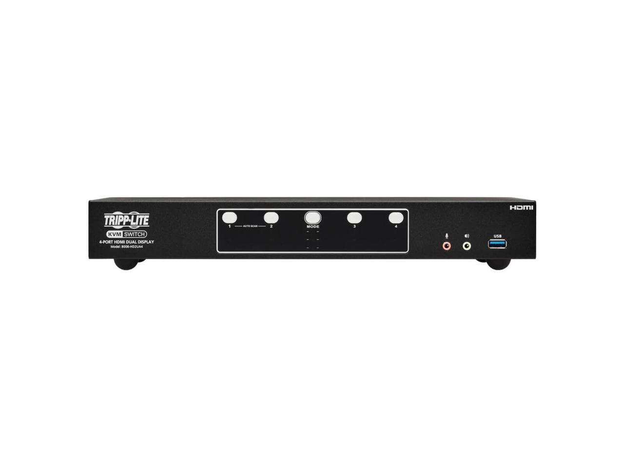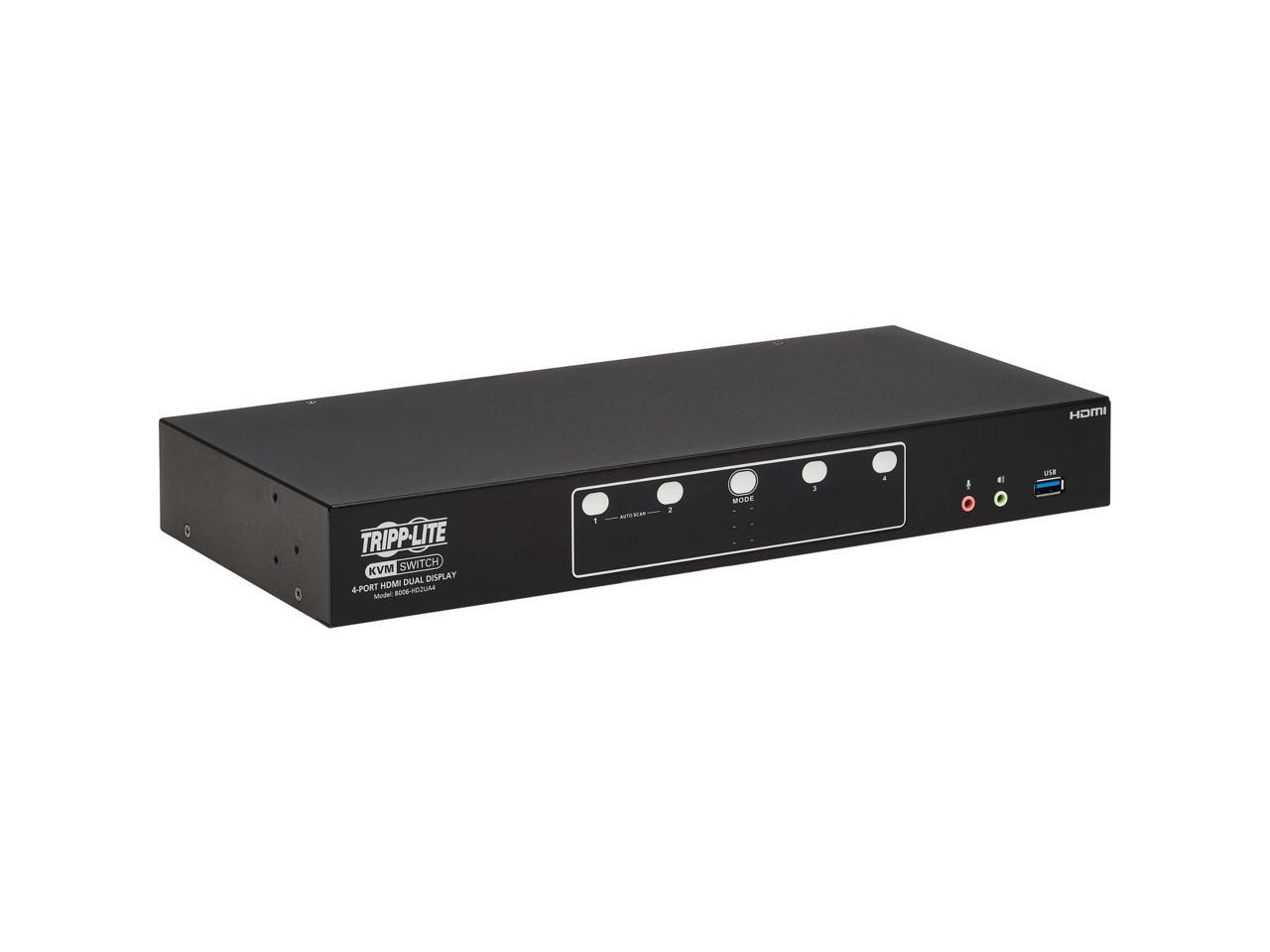 Tripp Lite B006-HD2UA4 HDMI Dual-Display KVM Switch - 1 Computer(s) - 4096 x 2160 - 50 Hz, 60 Hz - 1 x Network (RJ-45) - 8 x USB - 10 x HDMI - Desktop, Rack-mountable