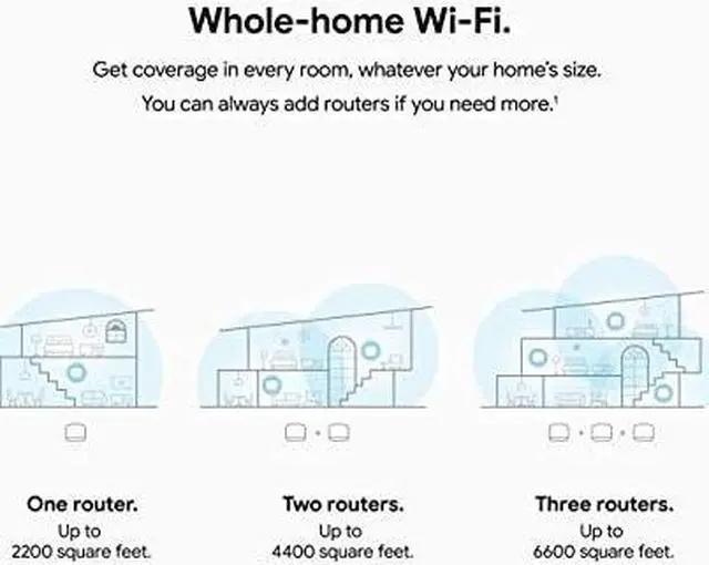 This nest Wi-Fi device blankets your whole home in fast, reliable Wi-Fi and eliminates buffering in every room – with coverage up to 4400 square feet. [1] from the team that made the best-selling mesh Wi-Fi System in the US. [2] nest Wi-Fi is a scalable and flexible Wi-Fi System. One Wi-Fi router plugs into your internet provider modem or gateway to create your Wi-Fi network. [1]Home size, materials, and layout can affect how Wi-Fi signal travels. Larger homes or homes with thicker walls or long, narrow layouts may need additional newest Wi-Fi devices for full coverage.