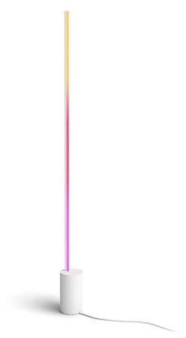 This Philips Hue White and color ambiance Signe gradient floor lamp offers flowing multicolor effects that blend seamlessly together to transform your home decor and the way you feel. This 29W smart RGB floor lamp features Bluetooth capability for instant light control in one room and offers up to 2550 lumens of brightness. Bluetooth makes it easy to get started with Philips Hue. Simply plug in the lamp, download the Hue app and start enjoying the convenience of smart lighting immediately. Dim, brighten, and set the mood right out of the box.