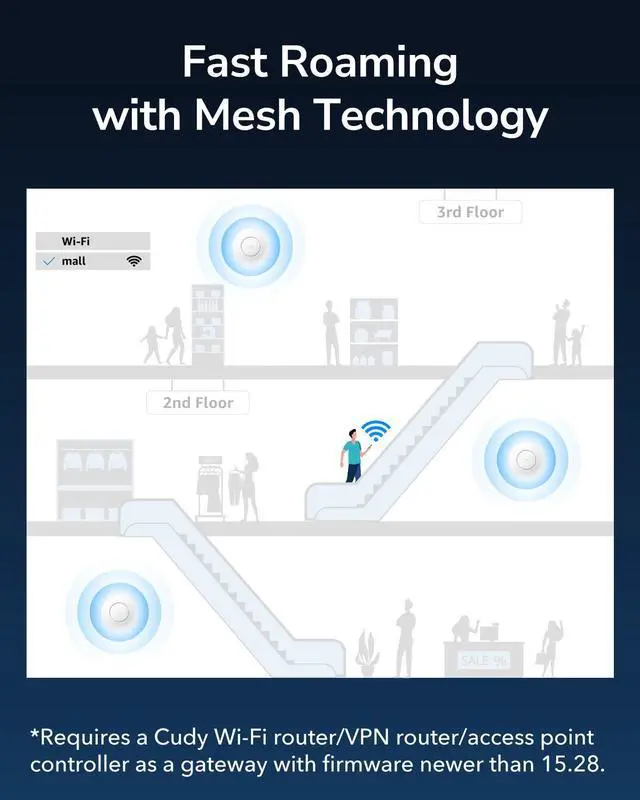 Mesh support (802.11k/v) allows clients to switch between access points seamlessly, ensuring uninterrupted Wi-Fi calling or live streaming when moving around.